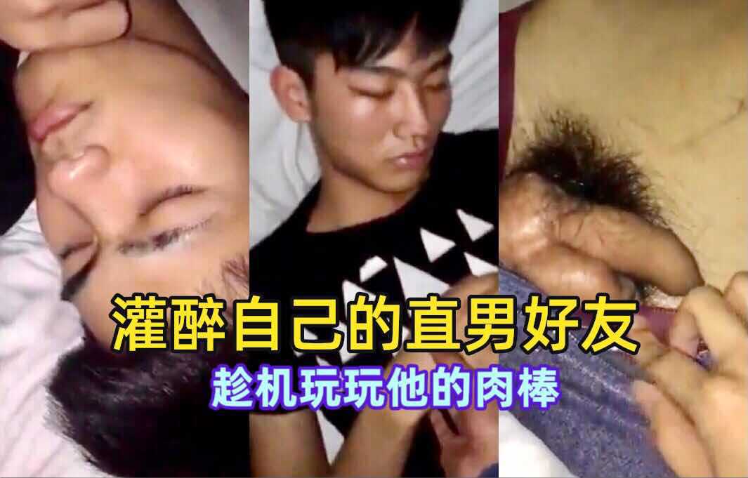 灌醉自己的直男好友 趁机玩玩他的肉棒