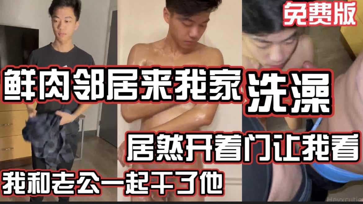 鲜肉邻居来我家洗澡竟敢不关门,我和老公直接联手无套内射他,gay圈3P大混战
