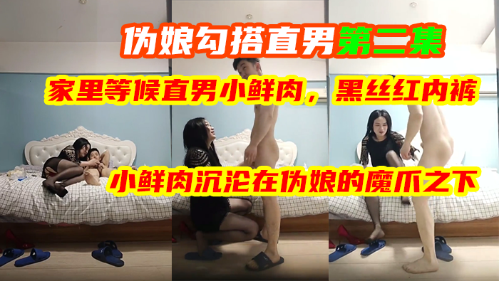 伪娘勾搭直男第二集,家里等候直男小鲜肉,黑丝红内裤,小鲜肉沉沦在魔爪之下