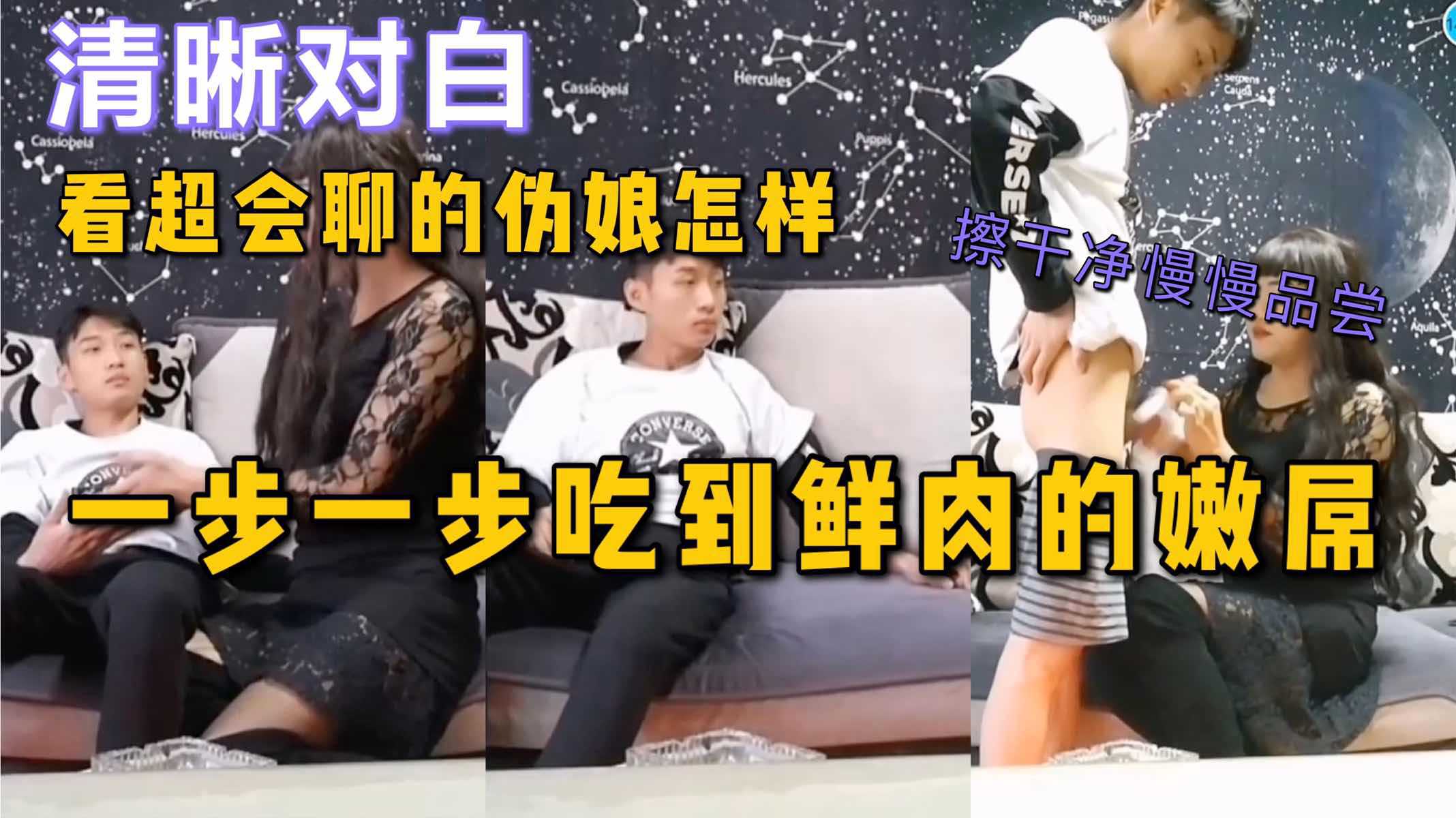 清晰对白,看超会聊天的伪娘是怎么一步一步吃到鲜肉学生的嫩屌,最后还被操了