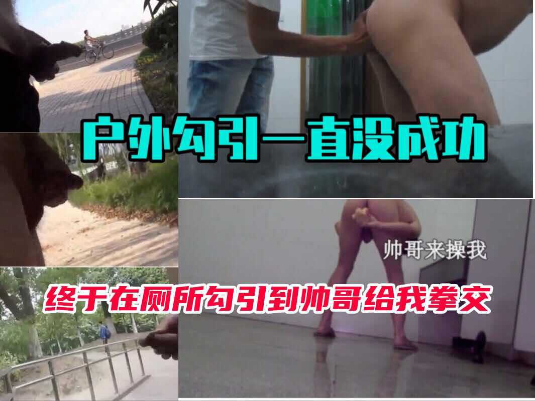 户外勾引一直没成功,终于在厕所勾引到帅哥给我拳交