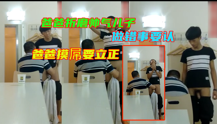 爸爸折磨帅气儿子,做错事要认,爸爸摸屌要立正