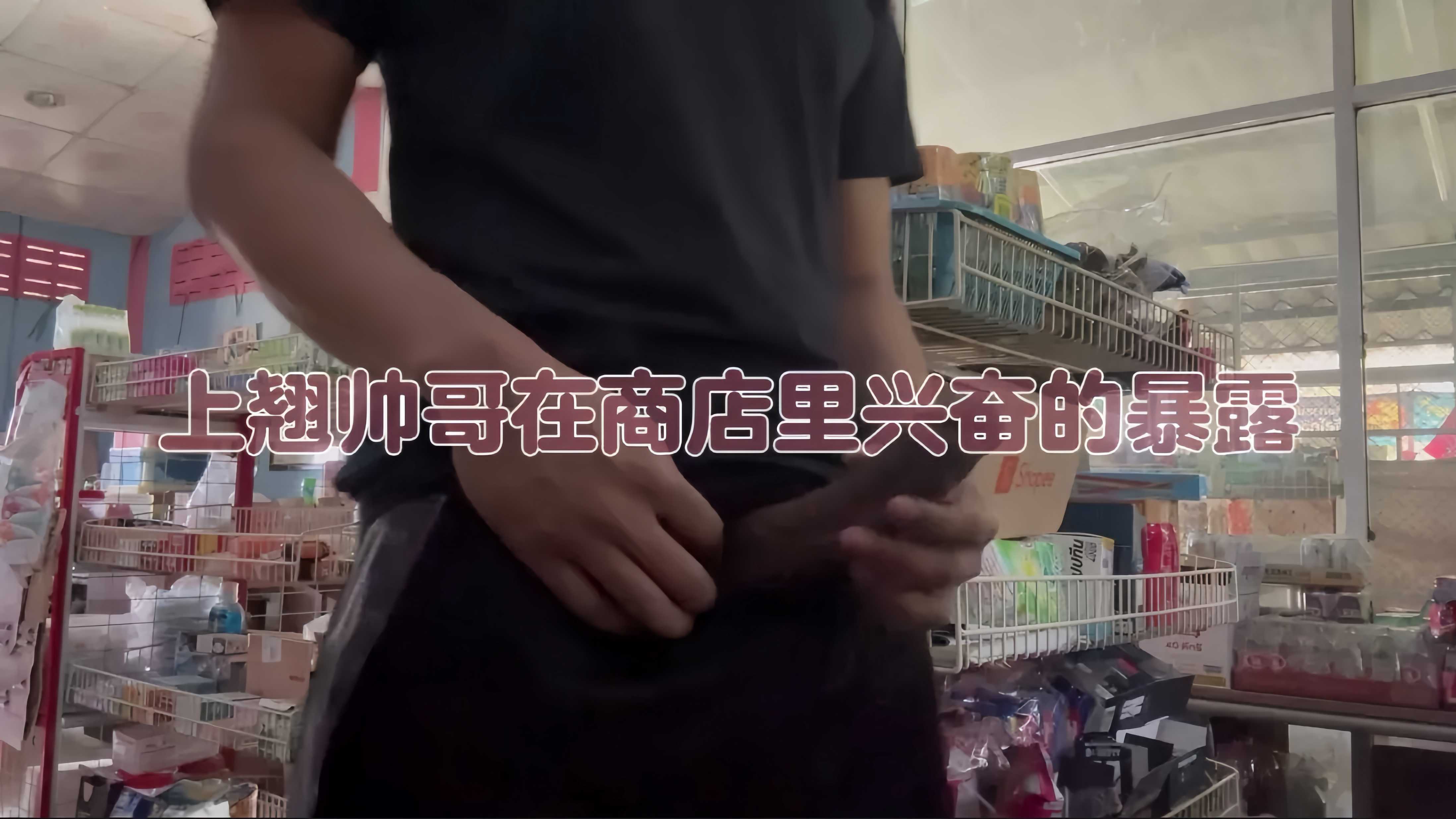偷偷掏出上翘大鸡 帅哥商店暴露撸射大屌