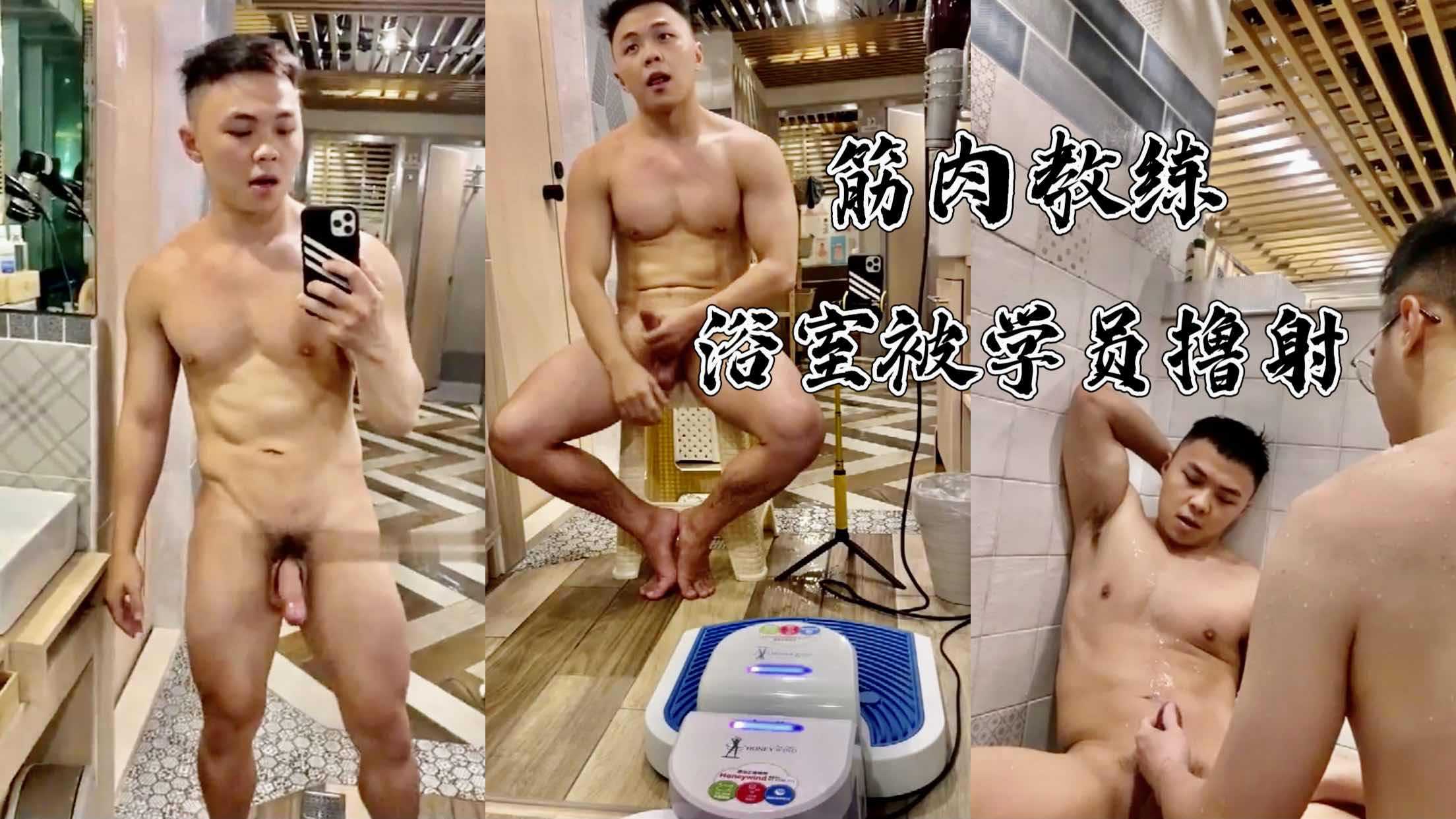 肌肉教练在浴室角落被学员偷偷撸射,大屌忍不住精液射满手,肌肉男被玩到腿软