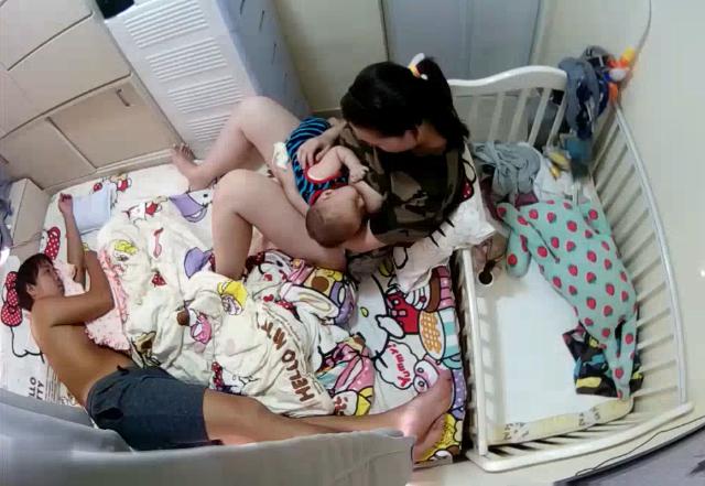 黑客破解家庭摄像头偷拍老公下班后累的不想动老婆给小孩喂奶