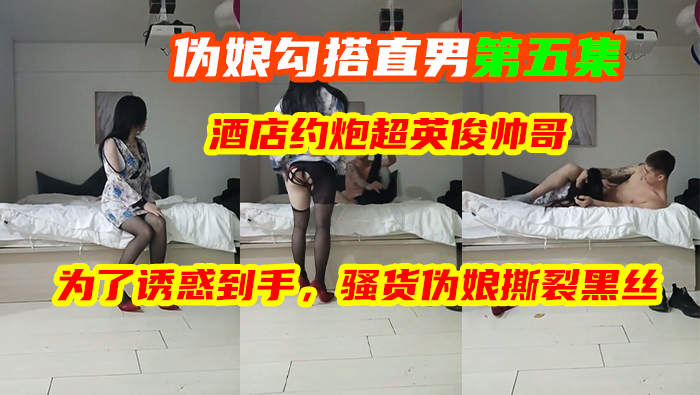 伪娘勾搭直男第五集,酒店约炮超英俊帅哥,为了诱惑到手,骚货伪娘撕裂黑丝