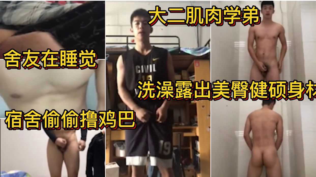 大二肌肉学弟 洗澡露出美臀健硕身材 舍友在睡觉宿舍偷偷撸鸡巴