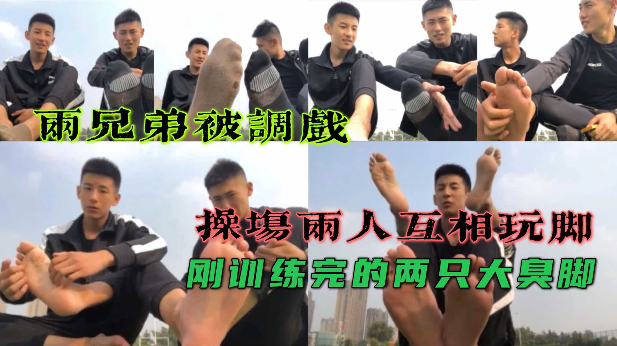 为了约炮 在学习操场被调戏互相玩脚 刚训练完的44码大臭脚