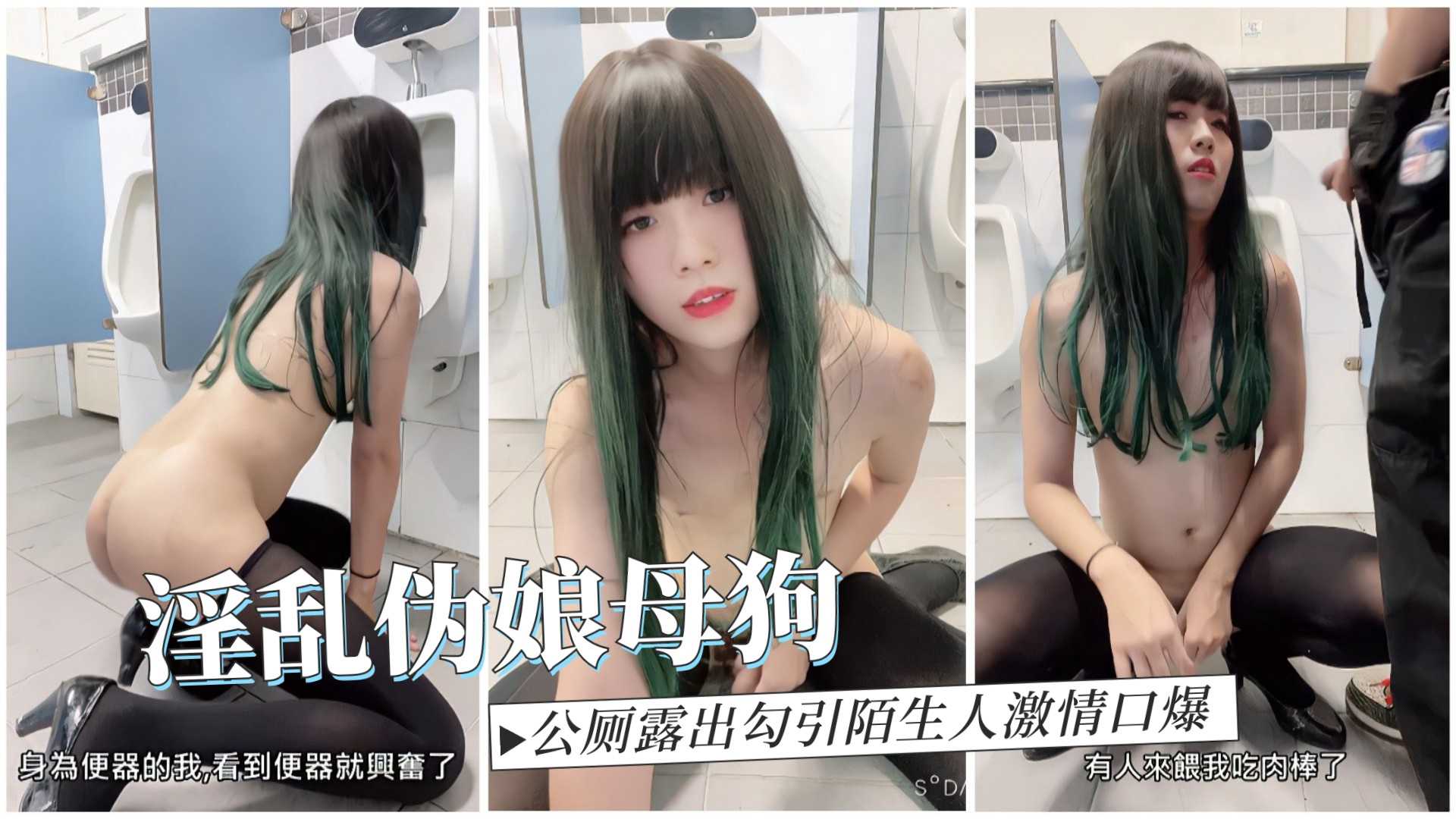淫荡伪娘母狗公厕露出勾陌生人,口技一流直接被口爆,射得满脸都是
