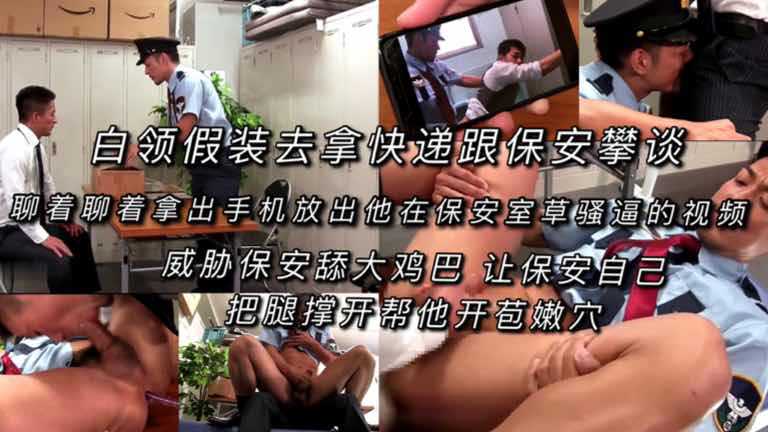 白领假装去拿快递跟保安攀谈聊着聊着拿出手机放出他在保安室草骚逼的视频威胁保安舔大鸡巴 帮他开苞